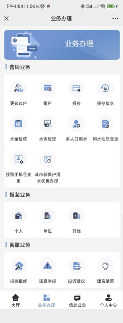 打開網(wǎng)上營業(yè)廳,點(diǎn)擊業(yè)務(wù)辦理-報(bào)裝業(yè)務(wù)-個(gè)人。