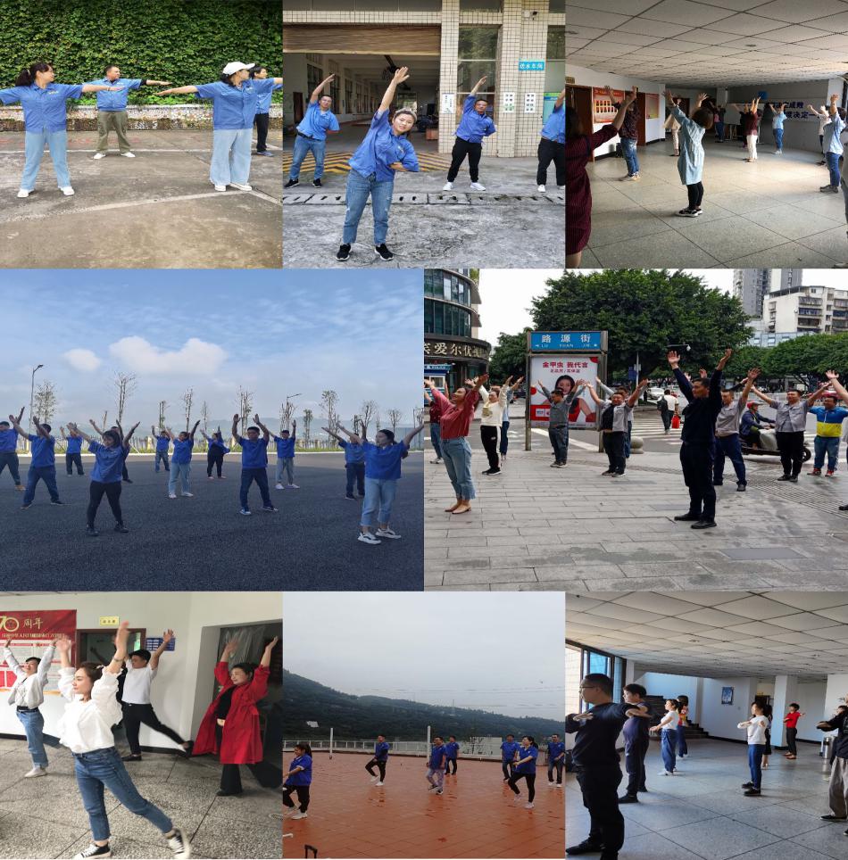 為了深入推進新時代愛國衛(wèi)生運動,引導(dǎo)廣大干部職工提高健康意識,增強身體體質(zhì),營造“快樂工作、健康生活”的氛圍,9月起,宜賓市清源水務(wù)集團有限公司以《第九套廣播體操》為科目,在工作日定時開展工間操活動。