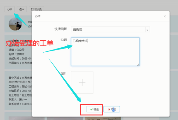 審核完成后,辦結(jié)受理的工單:
