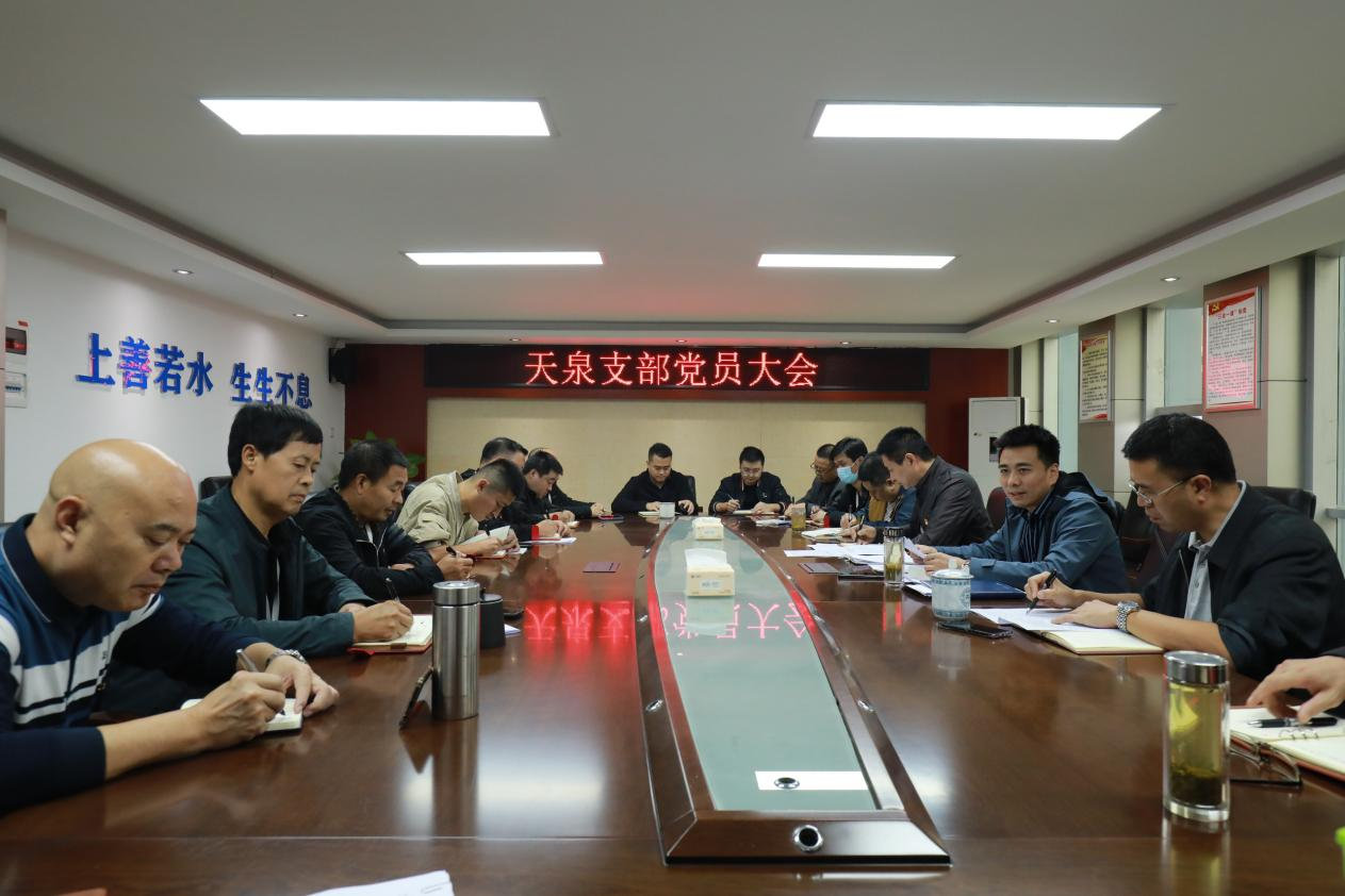 2022年10月27日下午,天泉支部在公司4樓會(huì)議室召開支部黨員大會(huì),傳達(dá)學(xué)習(xí)黨的二十大和黨的二十屆一中全會(huì)精神,深刻學(xué)習(xí)領(lǐng)會(huì)習(xí)近平總書記重要講話精神。會(huì)議由支部書記鐘洪勇主持,全體黨員、入黨積極分子參加。