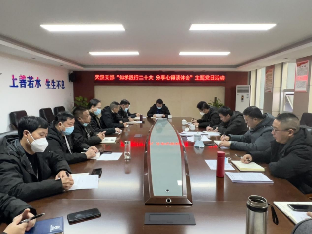 為認真領(lǐng)悟黨的二十大提出的新思想新論斷、作出的新部署新要求,推動黨的二十大精神入腦入心、落到實處,12月29日,天泉支部開展了“知學踐行二十大 分享心得談體會”主題黨日活動,專題交流學習黨的二十大報告精神心得體會。會議由支部書記鐘洪勇主持,全體黨員參加。