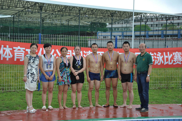 上午9點(diǎn),選手們?cè)缫炎龊觅惽皽?zhǔn)備,隨著裁判一聲號(hào)令,比賽正式開始。本次比賽設(shè)男子組和女子組50米游泳比賽、水上趣味接力賽、水上拔河比賽三個(gè)項(xiàng)目。首先進(jìn)行的游泳比賽,雖然選手們泳姿各異,逗樂了在場(chǎng)加油打氣的啦啦隊(duì)員們,但他們個(gè)個(gè)激情高昂,奮勇爭(zhēng)先。游泳池邊歡笑聲、加油聲不斷,場(chǎng)面熱鬧壯觀。經(jīng)過激烈角逐,男子組侯濤、陳顯洪、李節(jié)以及女子組秦仁玉、關(guān)黎宜、李卉嫻分獲冠亞季軍。陳總和唐書記分別為他們頒發(fā)了獎(jiǎng)牌。